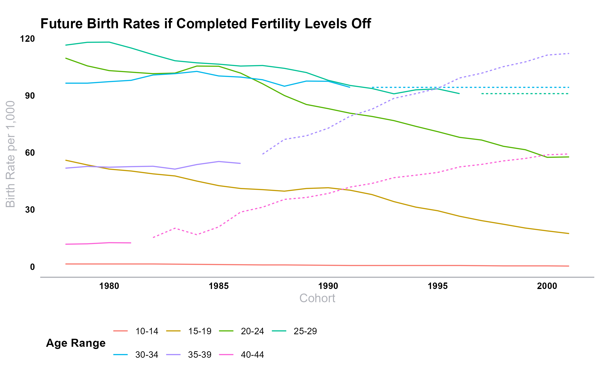 Here are the results, starting with the 1978 cohort. When both the 35-39 and the 40-44 bins are missing, I had them increase over the previous year by the same proportion as needed to keep completed fertility even.